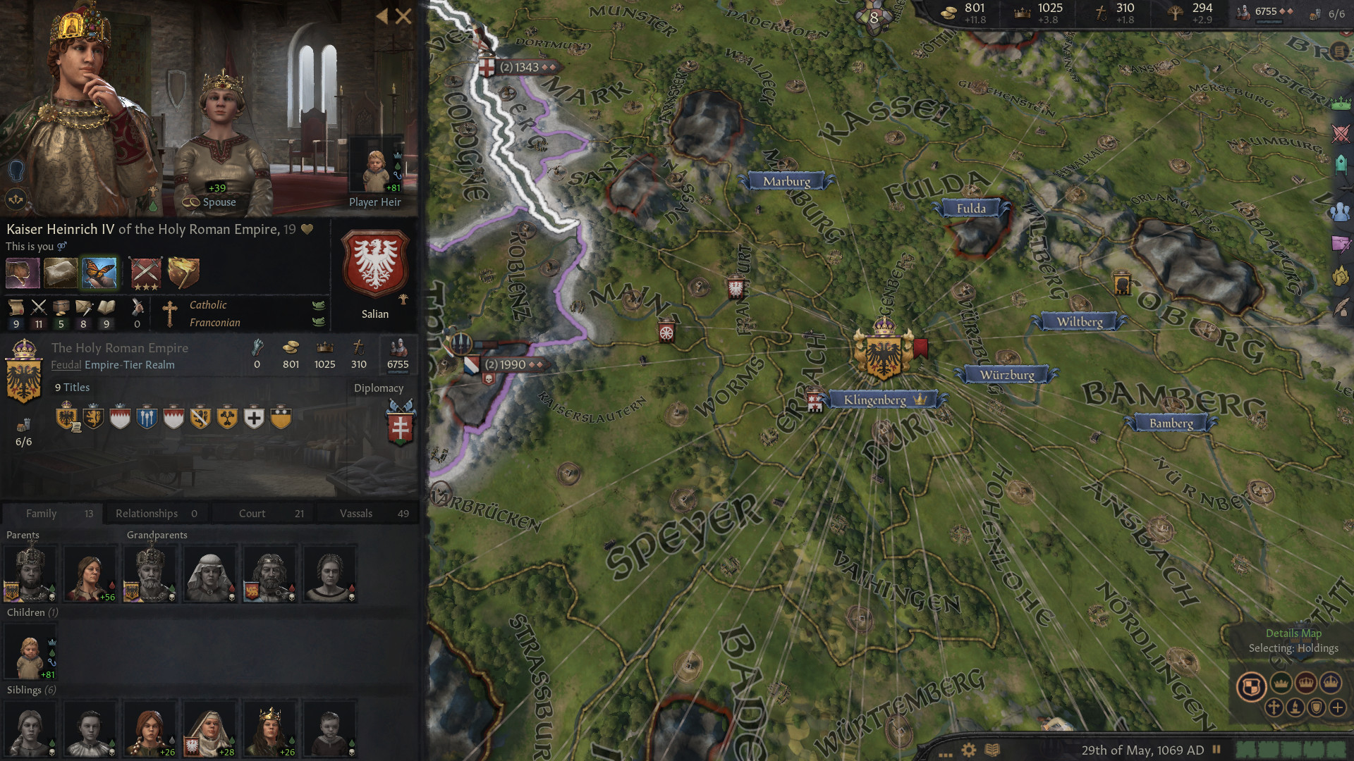 Ergreife die Macht über dein Haus und erweitere deine Dynastie in einem sorgfältig recherchierten Mittelalter. Starte im Jahr 867 oder 1066 und beanspruche Ländereien, Titel und Vasallen, um dir ein Reich zu sichern, das deinem königlichen Geblüt angemessen ist. Dein Tod ist nur eine Fußnote. Deine Dynastie lebt mit spielbaren Erben weiter – die nicht immer geplant waren.